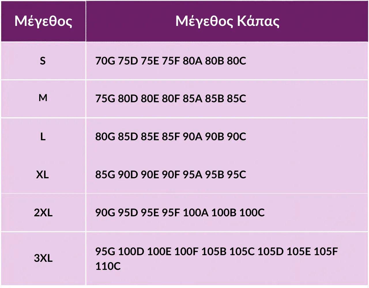 Αν διστάζετε μεταξύ δύο μεγεθών, επιλέξτε το μεγαλύτερο μέγεθος. Τα σουτιέν έχουν μεγέθη σύμφωνα με τα πρότυπα.