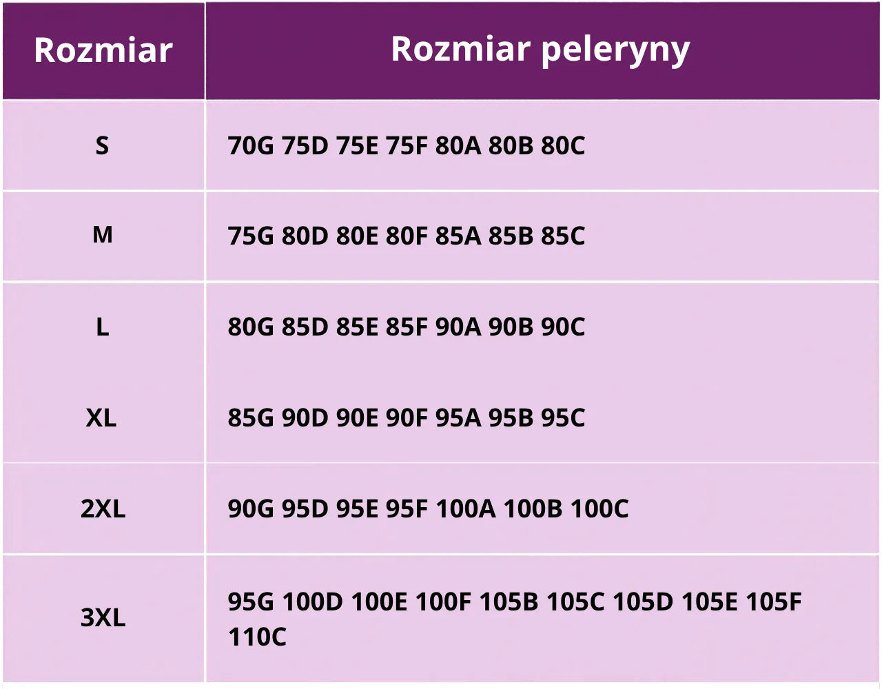 Jeśli wahasz się między dwoma rozmiarami, wybierz większy. Biustonosze mają standardową rozmiarówkę.